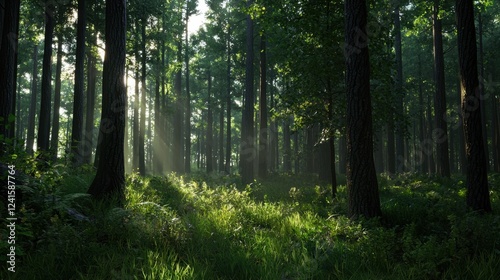 © Formoney, Obraz premium A forest with trees and grass