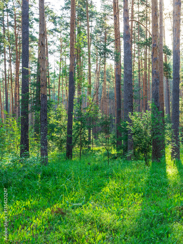 © Sergei, Obraz premium A forest with trees and grass