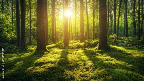 © liliyabatyrova, Obraz premium A forest with trees and grass in the foreground