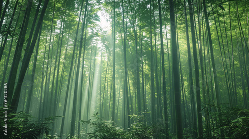 Fototapeta premium A forest with trees and sunlight shining through the leaves