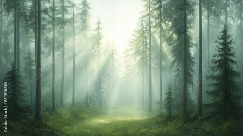 © SynthArt BWG, Fototapeta premium A forest with trees and sunlight shining through the trees