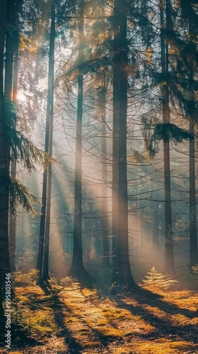 © liliyabatyrova, Naklejka premium A forest with trees in the foreground and background