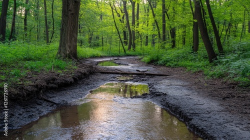 © Matcha_09, Obraz premium A forested watershed area acting as a natural water reservoir.