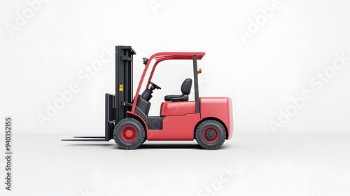 Fototapeta premium A forklift centered on a clean white background, with no distractions, showcasing the vehicle's design and functionality