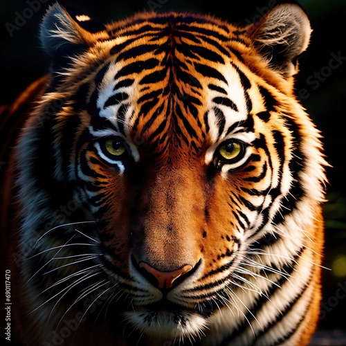 © Артем Шостак, Fototapeta premium A formidable tiger sneaks in the night forest. Generative AI.