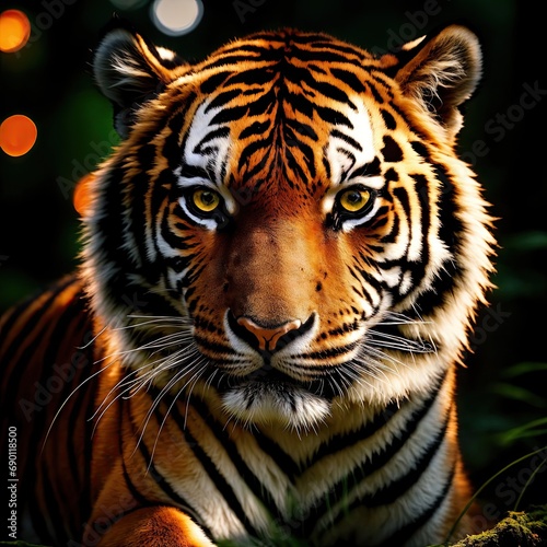 © Артем Шостак, Fototapeta premium A formidable tiger sneaks in the night forest. Generative AI.