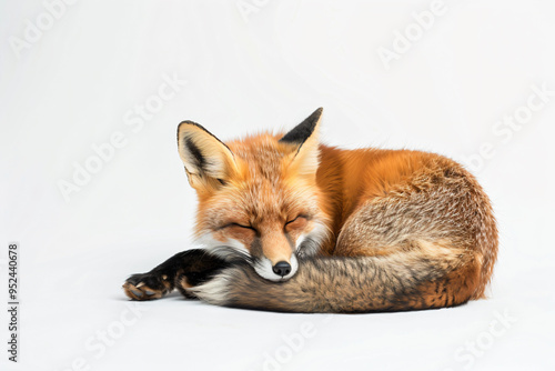 © Nam, Fototapeta premium a fox curled up sleeping on a white surface