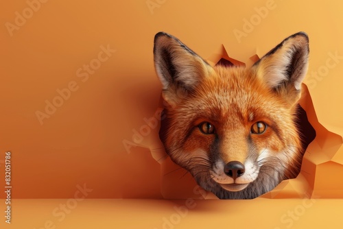 © Phuriphat, Obraz premium A fox is peeking out of a hole in a wall