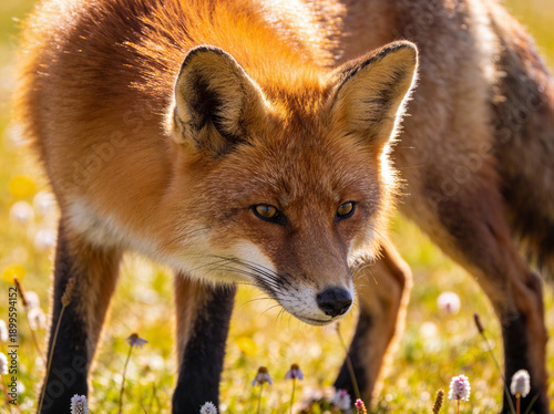 © Levon, Fototapeta premium A fox is walking through a field of flowers