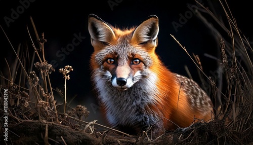 © Wat.Pt, Naklejka premium a fox lost near the hunt; small predator in low key, dark.