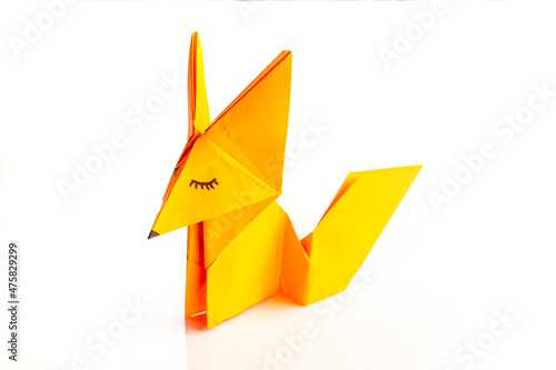 © Denis, Naklejka premium A fox origami with white background