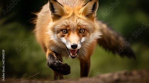 Fototapeta premium a fox running on a log