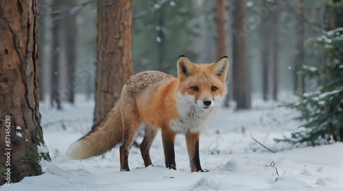 © Masum, Fototapeta premium a fox standing in the snow in the woods