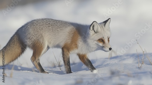 © Arti, Fototapeta premium A fox walking through the snow during a winter day