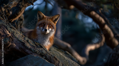 © Laura, Fototapeta premium A fox watching quietly from the edge of the woods