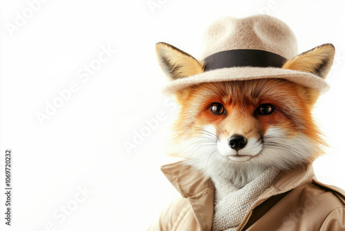 © Flowaiart, Obraz premium A fox wearing a hat and a coat