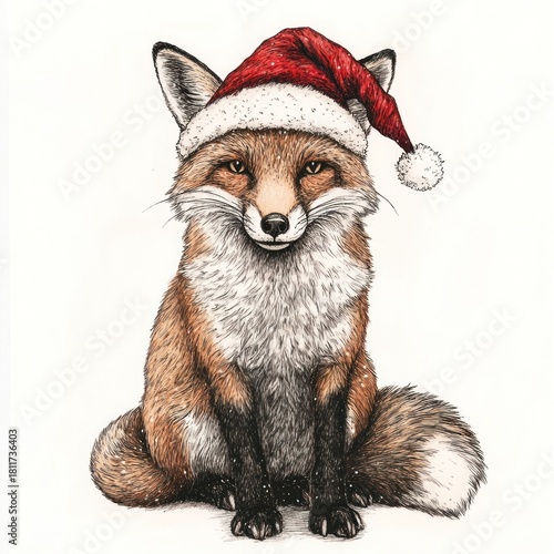 © Rawpixel.com, Naklejka premium A fox wearing christmas hat illustration animal art.