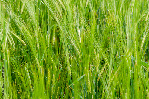 Fototapeta premium A fragment of a green rye field as an agricultural background