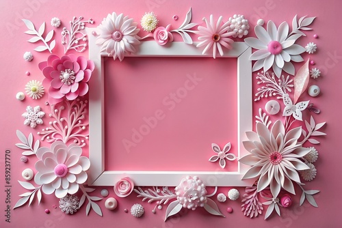 © Moonrise, Obraz premium A frame made of pink and white flowers on a pink background