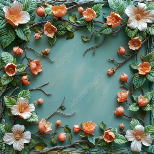 © siam, Fototapeta premium A framed image of flowers with a blue background