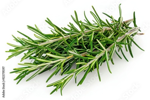 © Asad, Fototapeta premium A fresh bunch of rosemary sprigs with needle-like leaves, isolated on a pure white background
