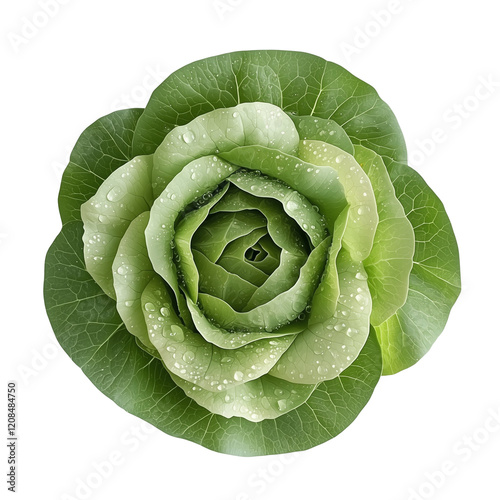 © PNG_emperor, Fototapeta premium A fresh green cabbage with water droplets, showcasing its layered leaves and vibrant color.