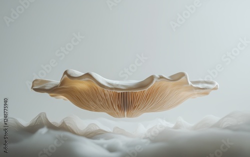 Naklejka premium A fresh king oyster mushroom levitating with soft natural lighting isolated...