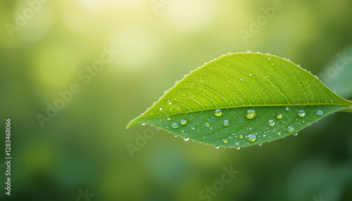 Fototapeta premium A fresh morning leaf with soft-focus dew drops