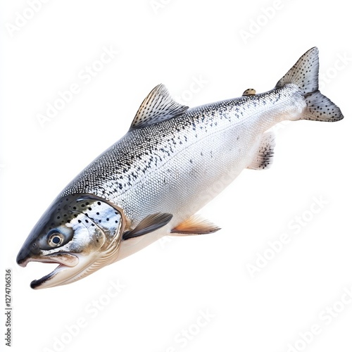 Naklejka premium A fresh salmon fish, isolated on a white background, showcasing its sleek...
