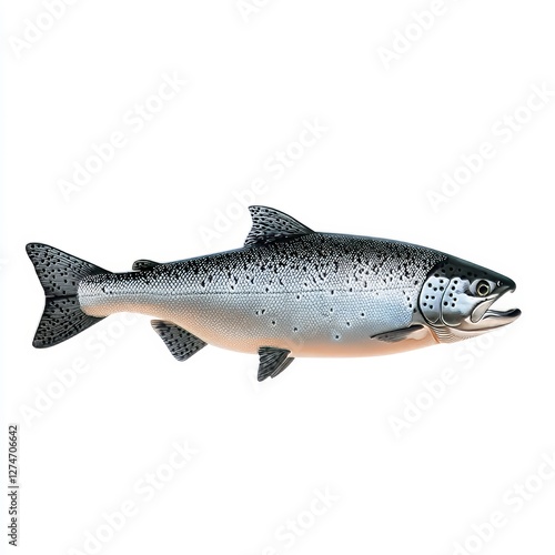 Naklejka premium A fresh salmon fish, isolated on a white background, showcasing its sleek...