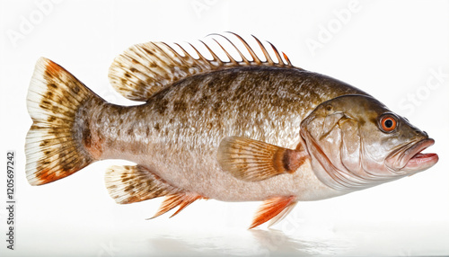 Fototapeta premium A fresh spotted grouper with unique patterns and vibrant fins, showcasing its appeal as a popular choice for seafood dishes and healthy marine cuisine