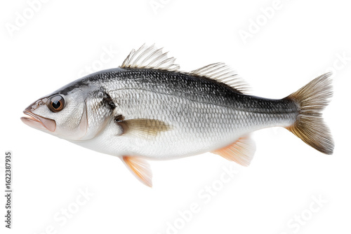 © S.JR Stocker, Fototapeta premium a Fresh Whole Sea Bass Fish, Expertly Captured with Focused Lighting and Isolated on a Transparent Background, Showcasing Scales and Natural Details