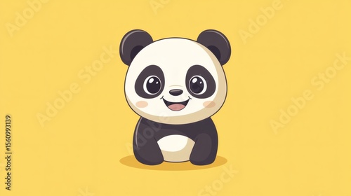 © kirania, Obraz premium A Friendly Adorable Panda Bear Cartoon Smiling Happily On Yellow