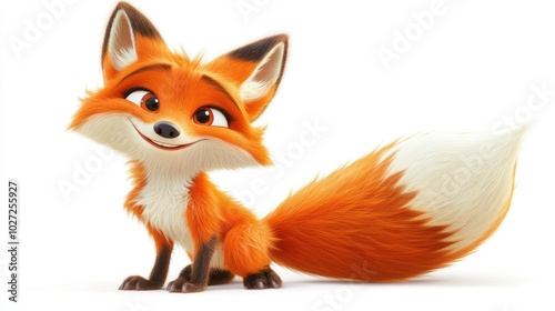 Fototapeta premium A Friendly Cartoon Fox with a Big Smile and Fluffy Tail