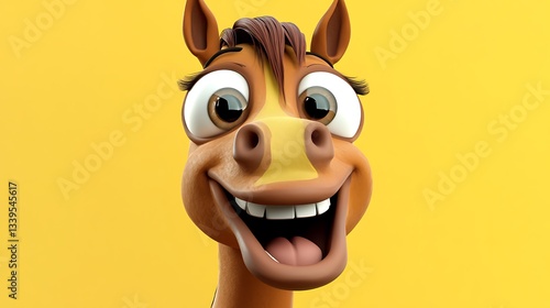 Obraz premium A friendly cartoon horse smiling widely with large expressive eyes
