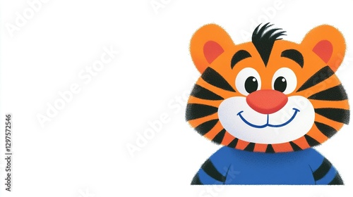 Obraz premium A friendly cartoon tiger is smiling happily in a portrait