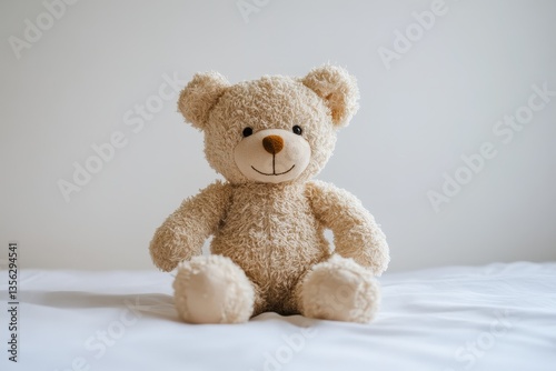 © Agent Neptunus, Obraz premium A friendly plush teddy bear sitting on a white surface
