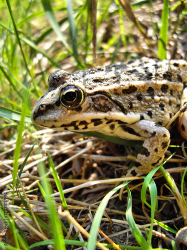 Fototapeta premium A frog is standing in the grass