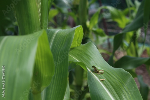 © 昭 小暮, Obraz premium A frog on the corn leaf
