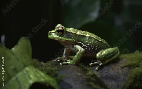 © mureli, Naklejka premium A frog or toad sits in a jungle background rainforest frog Generative AI