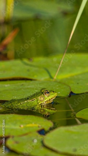 © Lansep, Fototapeta premium A frog resting on lily pads