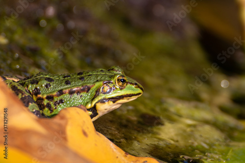 Fototapeta premium A frog sitting in the garden pond in summer