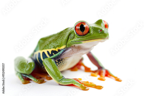 © Nam, Obraz premium a frog with a red eye sitting on a white surface