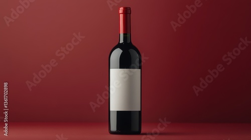 © Slowlifetrader, Fototapeta premium A front-facing red wine bottle in sharp focus, with blurred bottles in the background. Product showcase concept. Advertising photography.