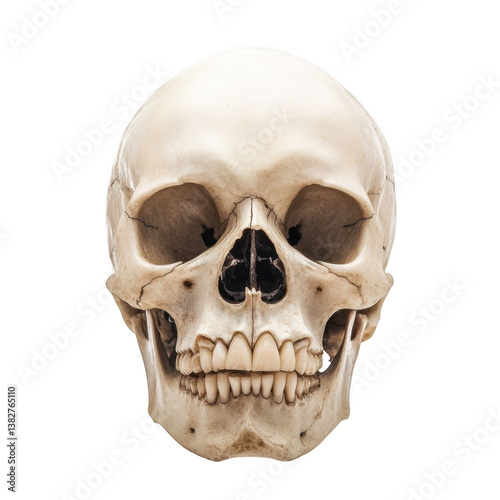 © Usman, Obraz premium A front facing view of a human skull with visible teeth and eye sockets on a transparent background