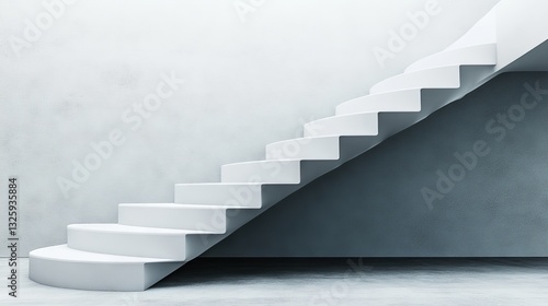 © Julia, Obraz premium A frontal view of white stairs, serving as a blank template for a platform or podium