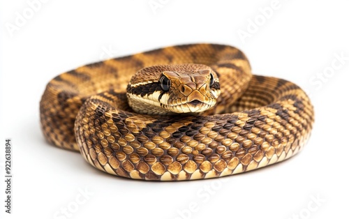 © Sergey, Obraz premium A full body photo of an eastern diamondback rattlesnake isolated on white background, no text or images in the picture.