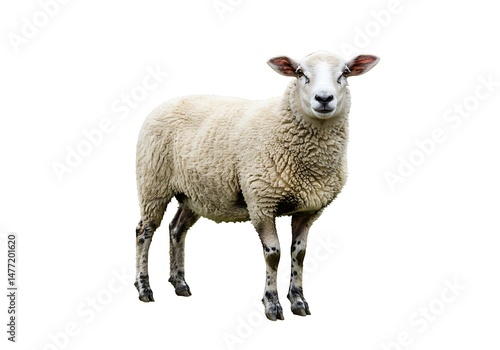 © Foysal, Naklejka premium A full body shot of a sheep on a white background plain