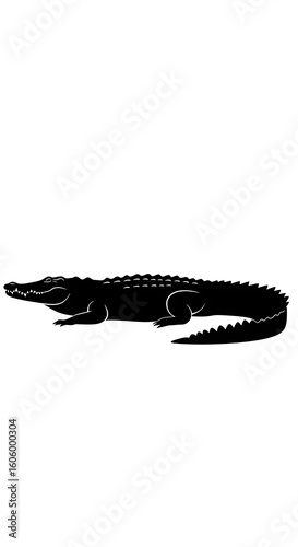 Naklejka premium A full body silhouette of an alligator with a long tail and short legs on a...