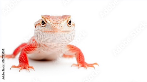 Naklejka premium A full-body studio shot of a small red and white lizard against a clean white...
